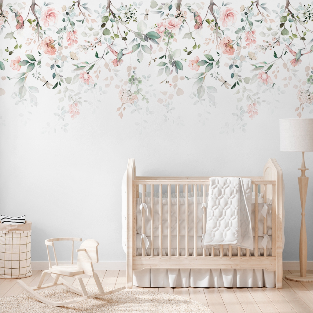 Papel De Parede Adesivo Floral Folhas Verdes Suspensas