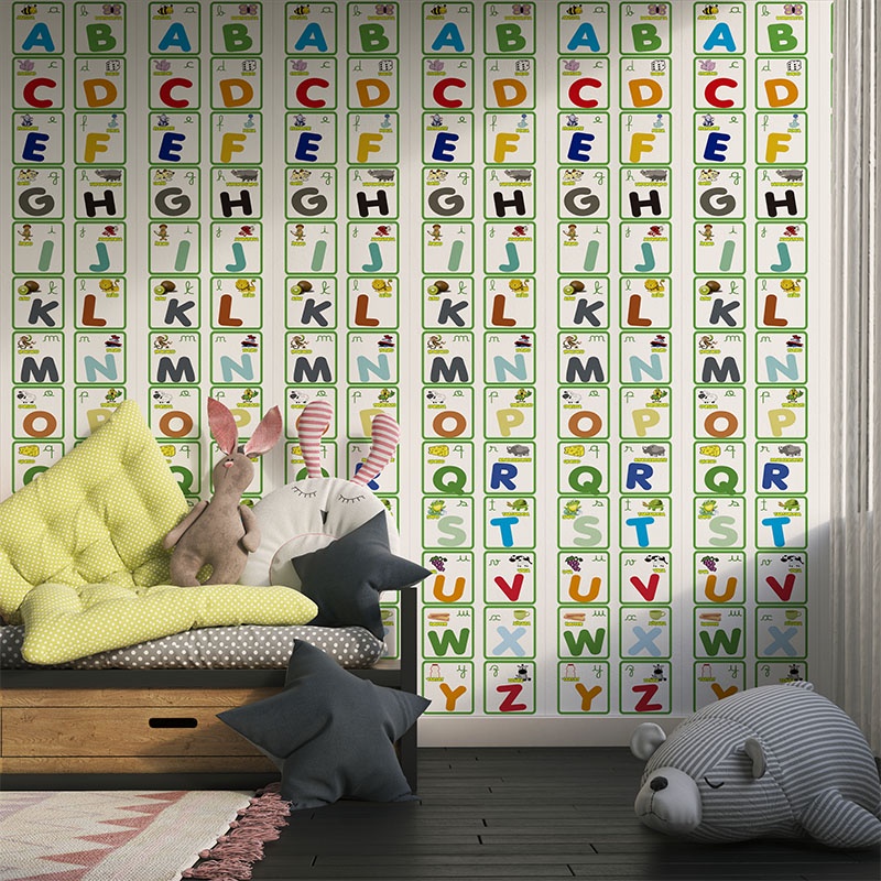 Papel de Parede Adesivo Infantil Alfabeto Com Detalhes Em Tons de Verde 1m