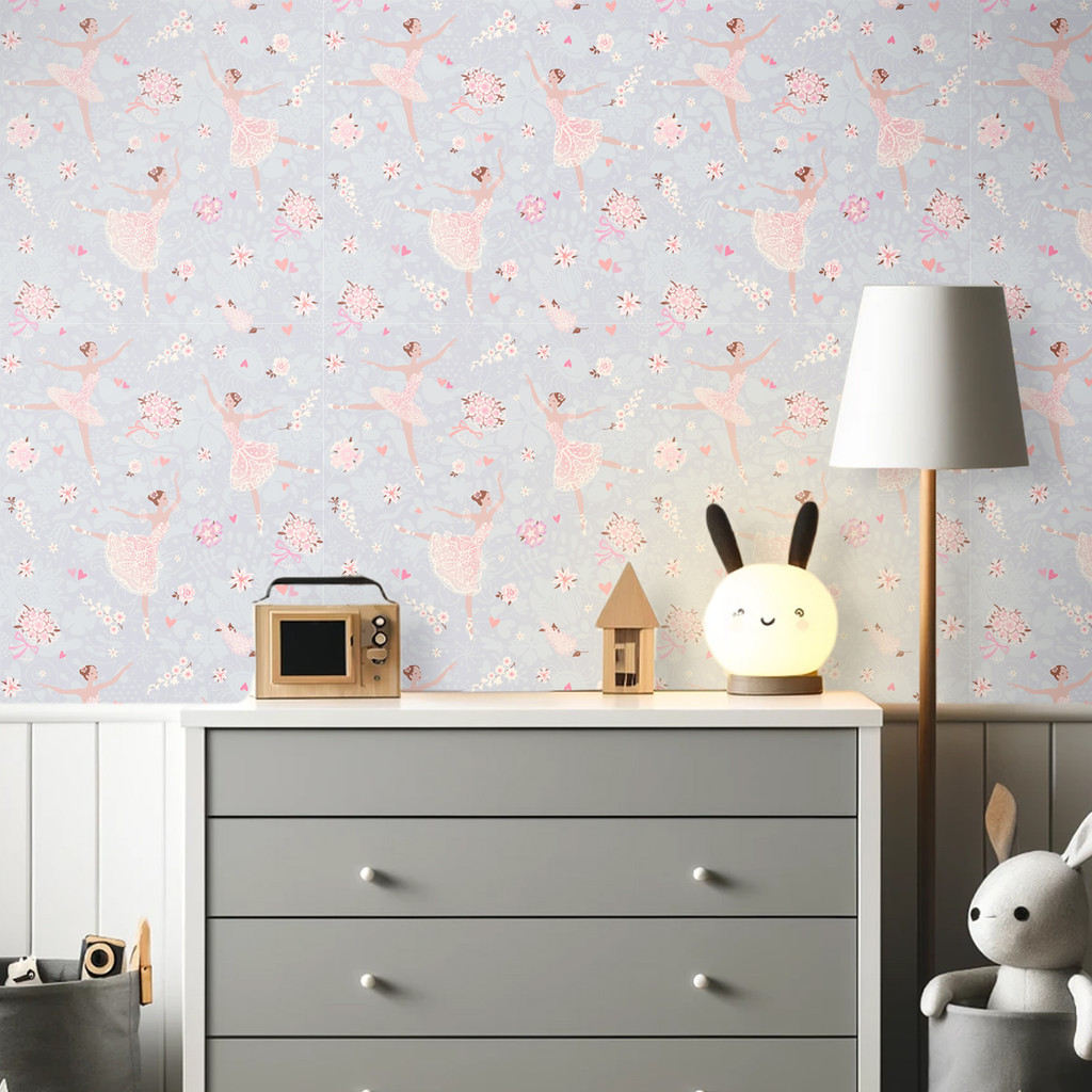 Papel De Parede Adesivo Infantil Bailarina Ballet Balé Rosa Lilás Menina Rolo