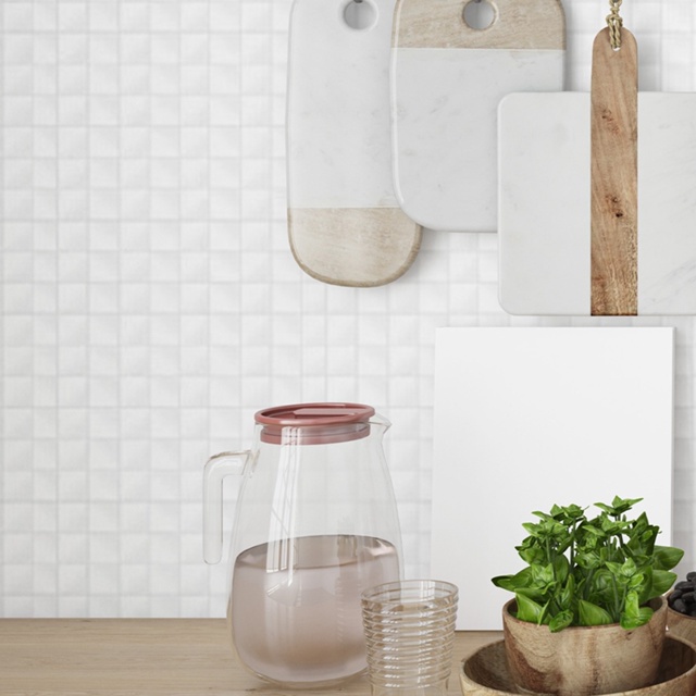 Papel De Parede Adesivo Lavável 3m Pastilhas Branco Gelo Autocolante Geomoétrico Tipo Pedrinhas sala