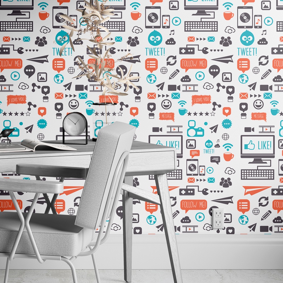 Papel De Parede Adesivo Lavável Loja De Informática Computador Celular