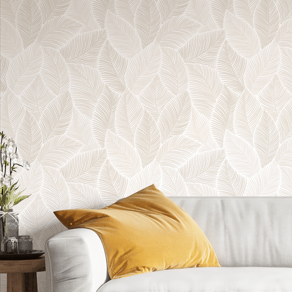 Papel de Parede Adesivo Lavável Texturizado Folhas Para Quarto Sala