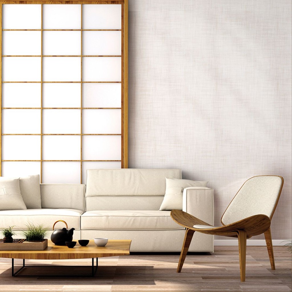 Papel de Parede Adesivo Linho Bege Tecido Minimalista Vinílico Autocolante Para Quarto Sala