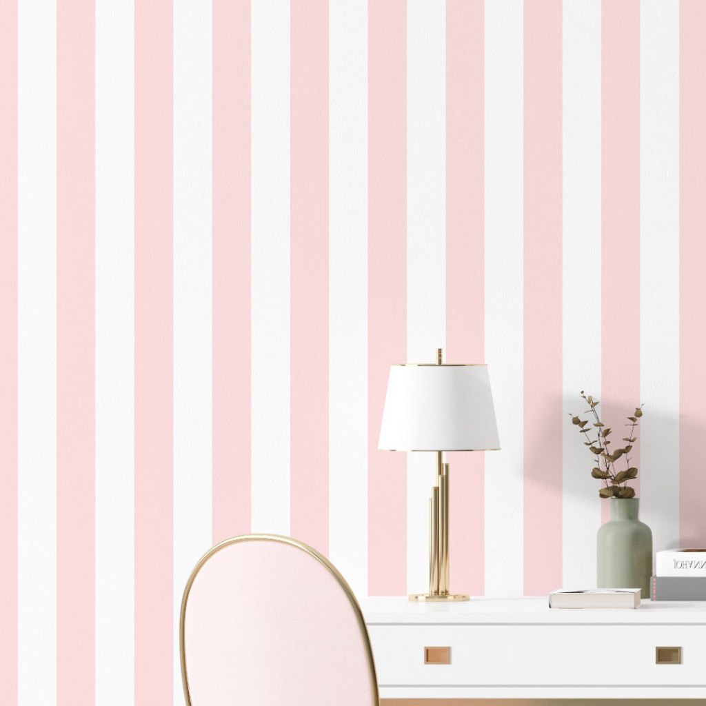 Papel de Parede Adesivo Listrado Rosa e Branco Infantil Lavável Autocolante