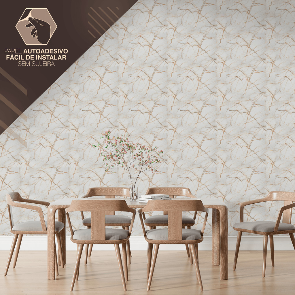 Papel de Parede Adesivo Mármore Bege Veios Marrom Resistente Fácil de Aplicar