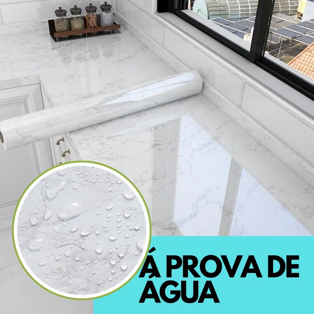Papel De Parede Adesivo Mármore Branco Preto Dourado Lavável Cozinha Banheiro Box Brilhoso
