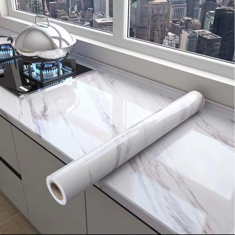 Papel De Parede Adesivo para cozinha Mármore Gelo Brilante Lavável 4.5 Metro x 60cm Resistente a Agua/Óleo