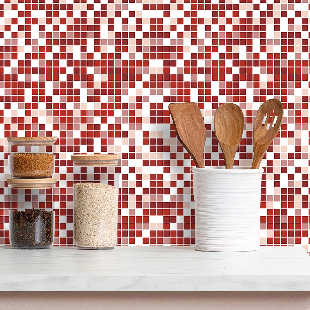 Papel de Parede Adesivo Pastilha Diversos Modelos Tons de Vermelho Rolo 1m