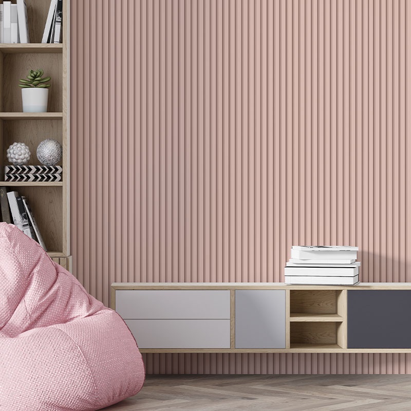 Papel de Parede Adesivo Ripado de Madeira Em Tons Rosa 12m