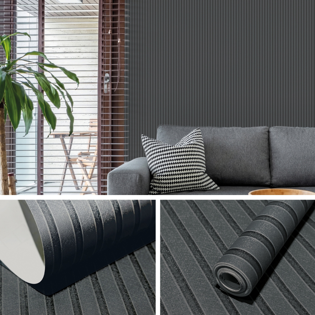 Papel De Parede Adesivo Ripado Ripas Cinza Lavável Para Escritório Sala Vinil Autocolante