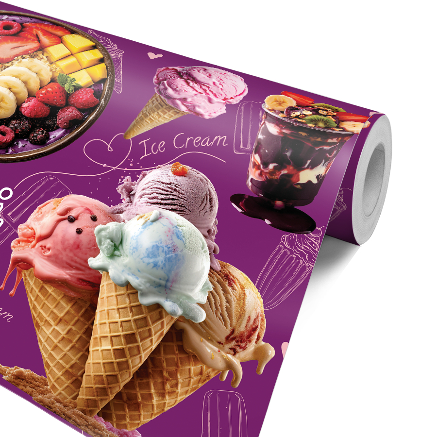 Papel de Parede Adesivo Sorvete Açaí Açaiteria Sorveteria Decoração Frutas Chocolate Copo Tigela