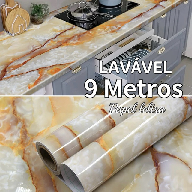 papel de parede Adesivos Brilante Lavável Mármore Âmbar 9 Metro x 60cm Resistente a Agua/Óleo material lavável aparece na subcategoria Papéis de Parede e Adesivos de Parede (de Casa e Construção) na Shopee Brasil por R$ 71,90 (19% de desconto sobre o preço original de R$ 88,77). Avaliado em 5.0/5 pelos compradores e 1 unidade vendida, este produto se destaca pelo excelente custo-benefício.