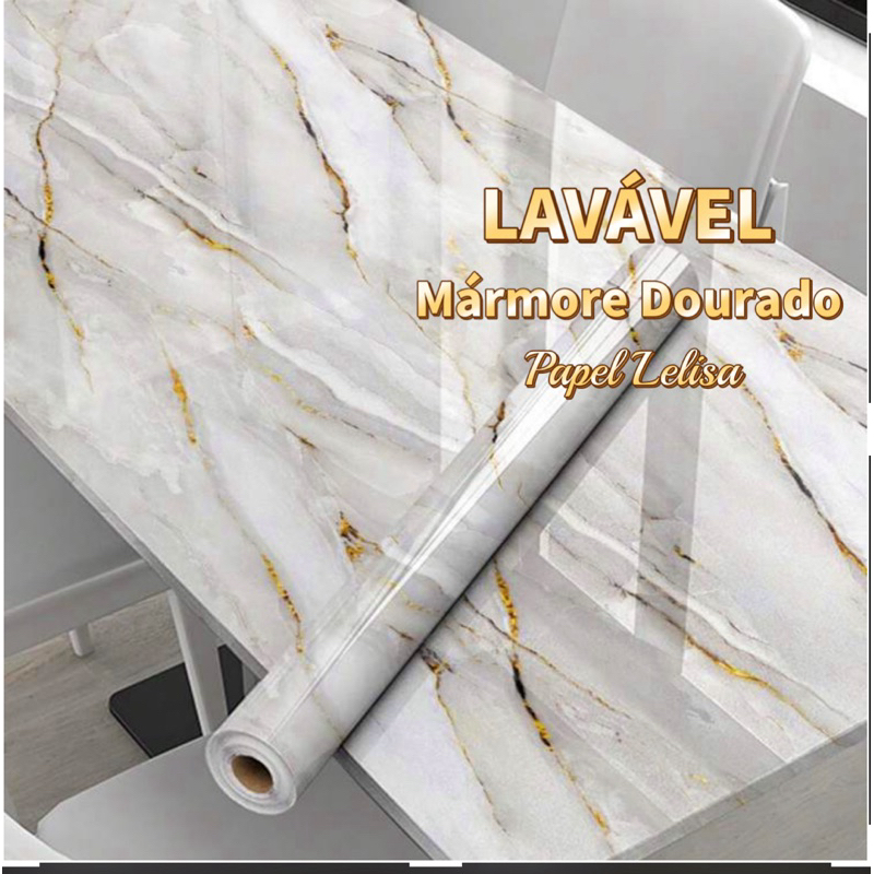 papel de parede Adesivos Brilante Lavável Mármore Dourado 4.5 Metro x 60cm Resistente a Agua/Óleo