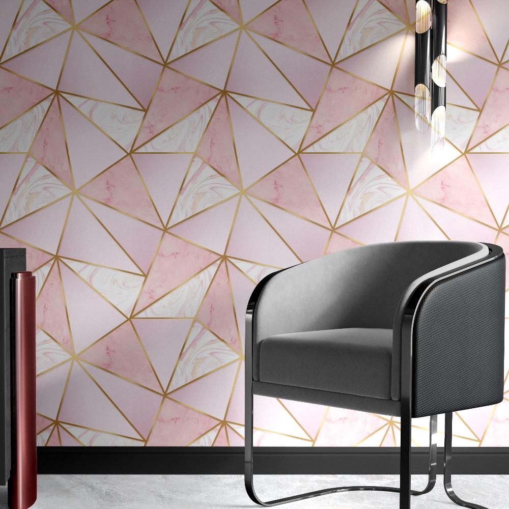 Papel de Parede Autoadesivo Geométrico Zara Rosa Gold Lavável Meia Parede