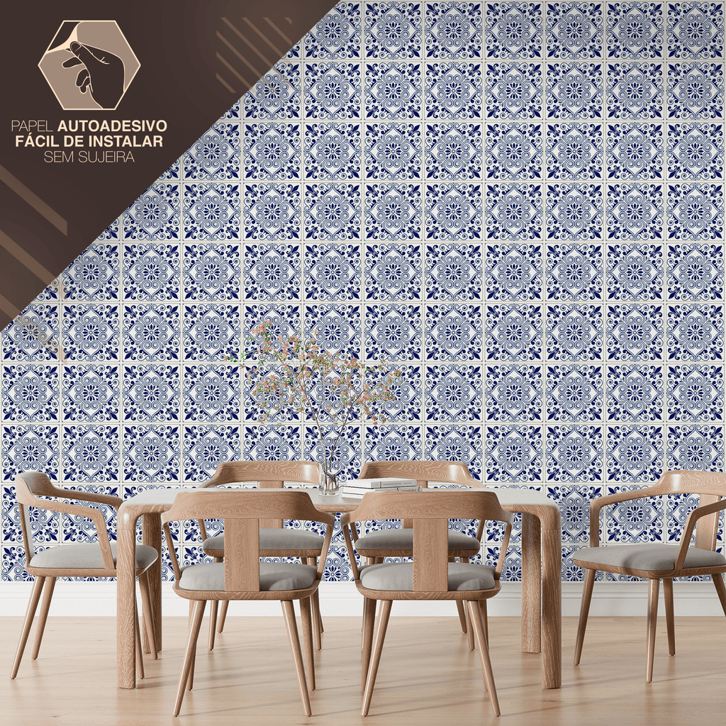 Papel de Parede Azulejo Português Clássico Adesivo Fácil Aplicação