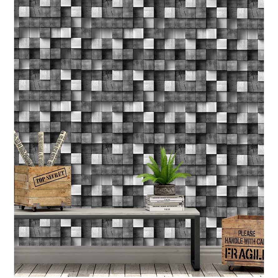Papel de Parede Bloco 3D de Madeira Para Quartos e Sala