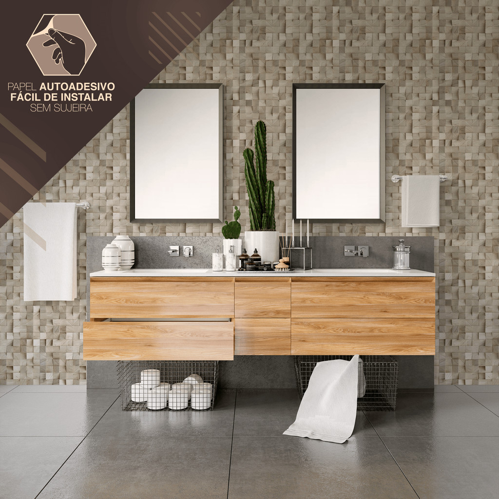 Papel de Parede Cubos Efeito Madeira Clara Adesivo Fácil Aplicação