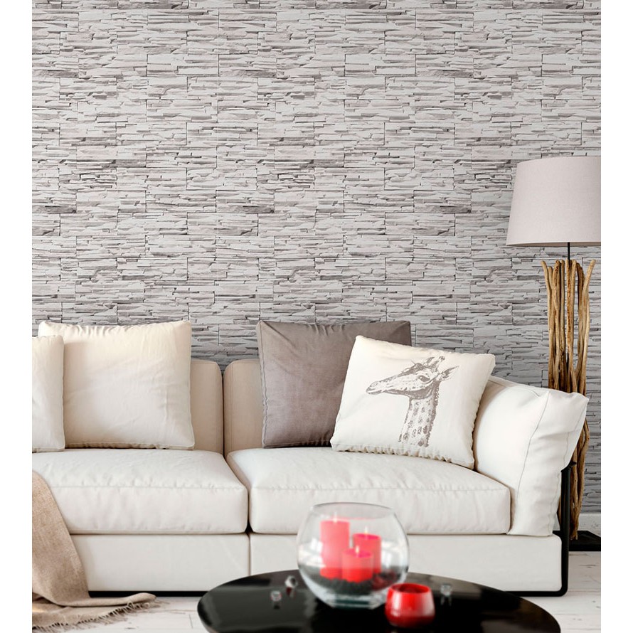 Papel de parede estilo pedras canjiquinhas em tons de cinza e branco Para Quartos e Sala