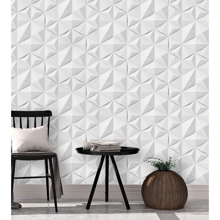 Papel de Parede geométrico Triangular Branco e tons de cinza Para Sala e Quarto