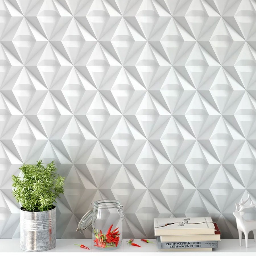 Papel De Parede Gesso Triangular 3D com efeitos de sombras