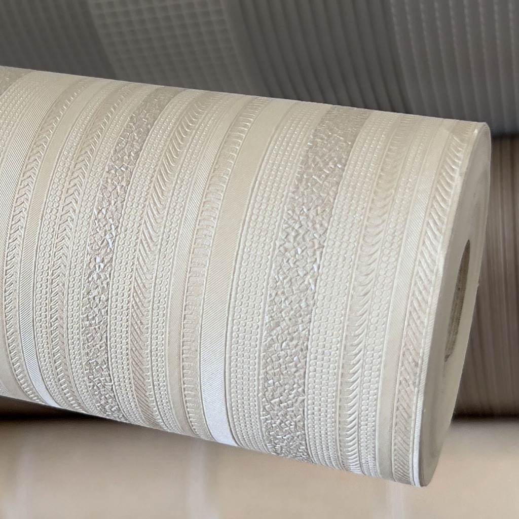 Papel de Parede Importado Textura Listrado Alto Relevo Tom Pérola e Nude - Rolo 10 metros x 53 centímetros - Cola Inclusa - Modelo 1007-3