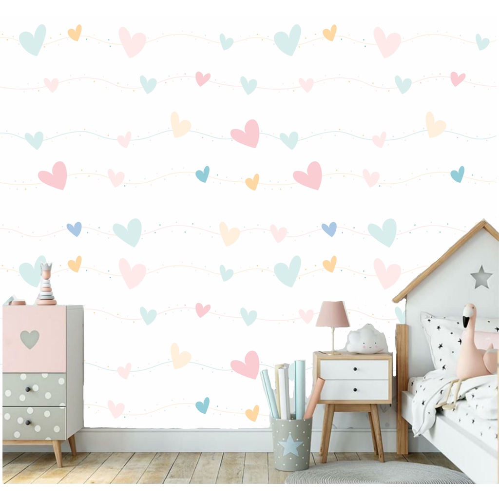 Papel De Parede Infantil Corações Coloridos Quarto Menina