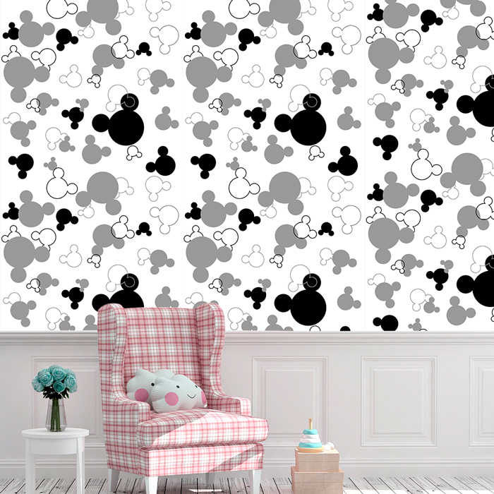 Papel De Parede Infantil Mickey Mouse Cinza Preto E Branco Autocolante Decoração Turma Cabeça