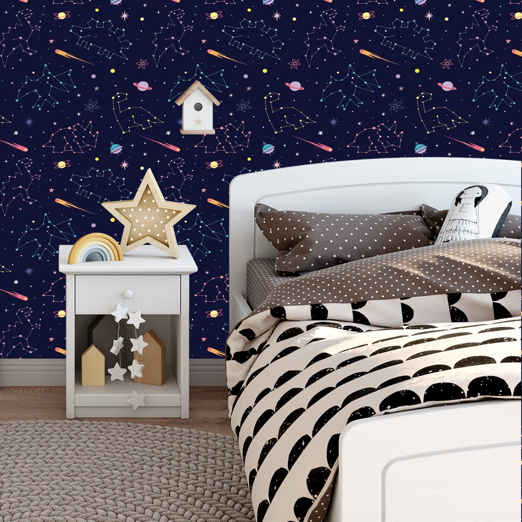 Papel de parede infantil para Quarto Dinossauro no Espaço Lavável Vinilico 3m