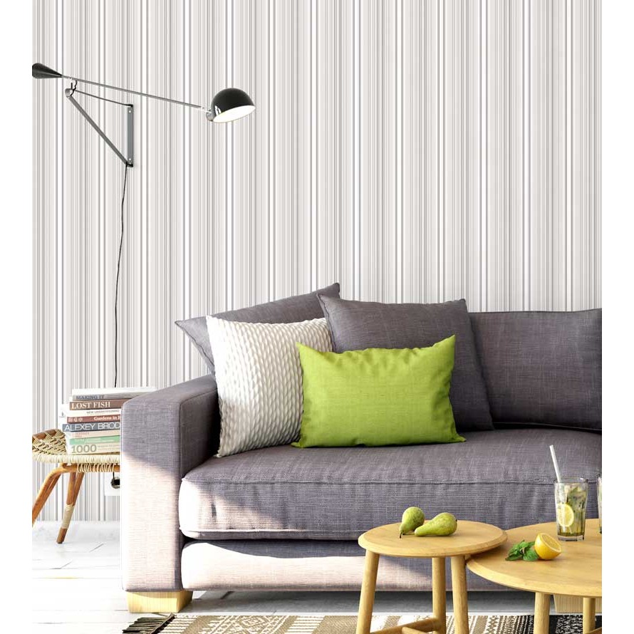 Papel de parede listrado branco, marfim e cinza Para Sala e Quarto