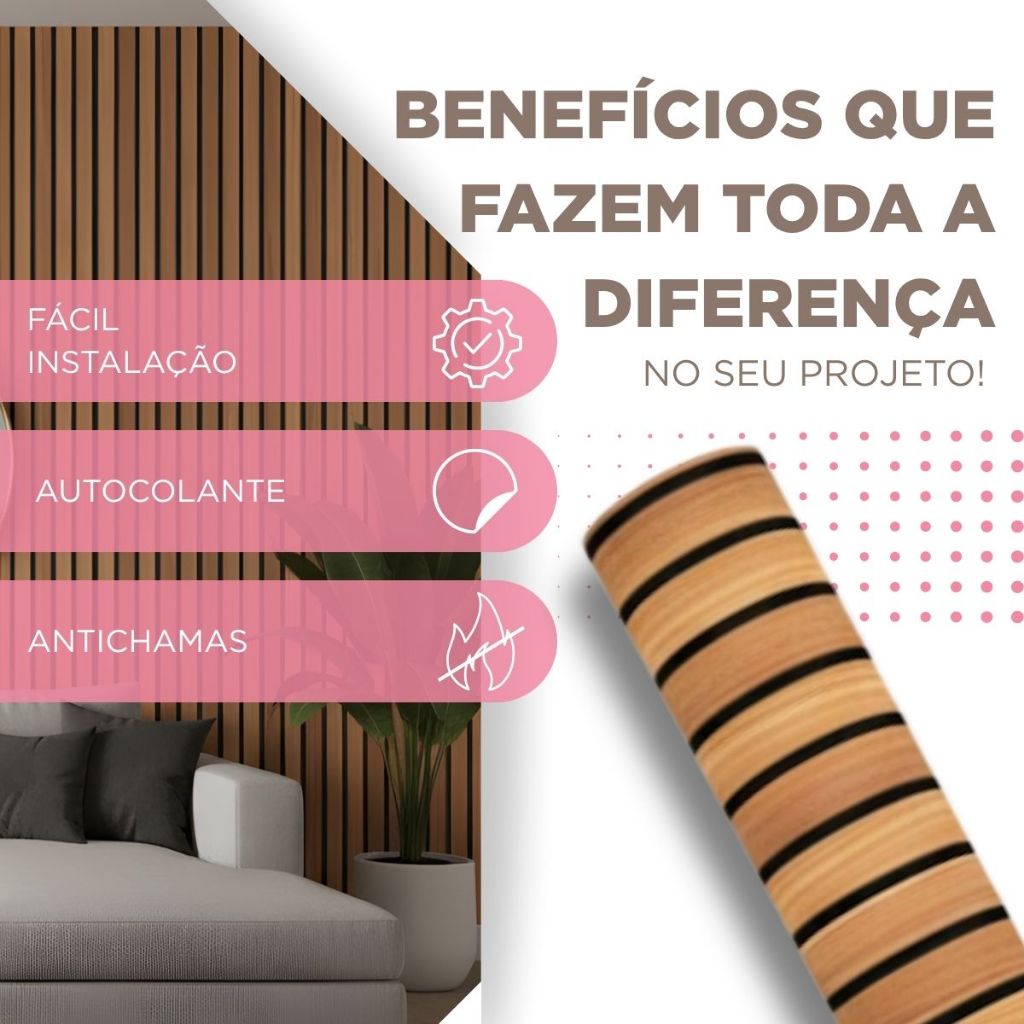 Papel de Parede Madeira Adesivo Autocolante 3d Ripado Freixo Vínilico Sala Quarto 10m x 45cm