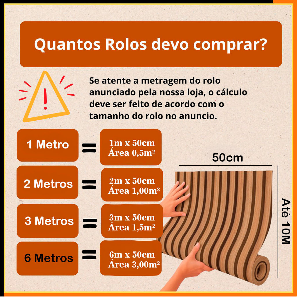 Papel de Parede Adesivo Impermeável - Transforme Seus Ambientes Sem Reforma! ✨ 🏠 CASA NOVA SEM OBRAS, SUJEIRA OU DOR DE CABEÇA! Renove seus ambientes de forma rápida, prática e econômica com nosso papel de parede autocolante premium. Resultado profissional garantido, sem precisar de pedreiro ou mão de obra especializada! 📏 ESPECIFICAÇÕES DO PRODUTO Material Vinil adesivo antirreflexo Espessura 0,08mm (extra resistente) Durabilidade 5 anos em ambiente interno 🧮 CALCULADORA DE ROLOS - SAIBA EXATAMENTE QUANTO COMPRAR 📐 FÓRMULA SIMPLES: Largura da parede ÷ 0,50m = Número de rolos necessários 💡 COMO CALCULAR PARA SUA PAREDE: COMO CALCULAR PARA SUA PAREDE: Passo 1: Meça a largura da parede com fita métrica Passo 2: Divida por 0,50m (largura de cada rolo) Passo 3: Arredonde para cima se der número quebrado Exemplo: Parede 4,23m (Largura) x 2,75m (Altura) Parede 2,75m (Altura) = 2,75 → 3 Metros Parede de 4,23m (Largura) = 4,23 ÷ 0,50 = 8,5 → 9 rolos Resultado final: 9 rolos de 3 metros + 1 rolo extra 🚀 VANTAGENS EXCLUSIVAS ✅ Aplicação Sem Cola: Autocolante - apenas descole e aplique 🧼 100% Lavável: Resistente à água, óleo e sujeira 🛡️ Proteção Total: Anti-mofo, sem cheiro e antichamas 📱 Suporte Completo: Manual impresso + atendimento por vídeo 🎨 Alta Qualidade: Impressão em alta resolução com cores vivas 🔧 Encaixe Perfeito: Rolos se conectam sem emendas visíveis 💡 ONDE APLICAR ✅ Superfícies Ideais: Paredes com pintura lisa Madeira, MDF e móveis planos Vidros e azulejos Gesso e metais ❌ Evitar: Superfícies úmidas ou porosas Paredes com textura ou relevo ⚠️ DICA IMPORTANTE DE COMPRA Recomendamos comprar 1 rolo extra além da quantidade calculada. Assim você terá: 🛡️ Reserva para reparos futuros 🎨 Proteção contra diferenças de tonalidade entre lotes 📐 Margem de segurança para ajustes na aplicação Exemplo: Se sua parede precisa de 5 rolos, compre 6 rolos total. 🏆 POR QUE ESCOLHER NOSSO PRODUTO? 🔸 Fabricação Própria: Controle total de qualidade 🔸 Matéria-Prima Premium: Apenas materiais de primeira linha 🔸 Instalação Simplificada: Qualquer pessoa consegue aplicar Economia Garantida: Sem gastos com pedreiro ou obra 🔸 Resultado Profissional: Visual impecável e duradouro 🎯 TRANSFORME SEU LAR AGORA! Já sabe quantos rolos precisa? Use nossa calculadora acima e realize o sonho da casa renovada hoje mesmo! Com nosso papel de parede, você terá: ✨ Ambientes sofisticados e modernos 💰 Economia em reformas ⏱️ Aplicação em poucas horas 🎨 Diversas estampas para todos os gostos Garanta já a quantidade exata para seu projeto e descubra como é fácil ter a casa dos seus sonhos!