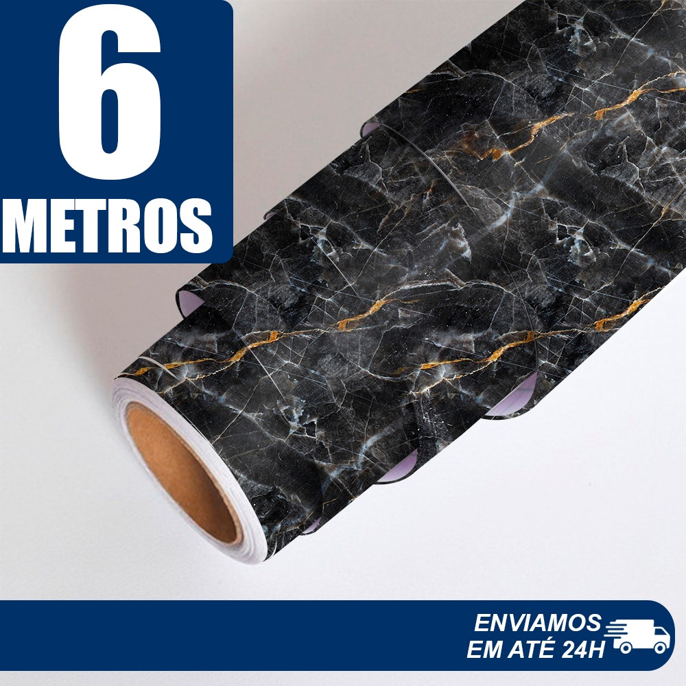 Papel de Parede Mármore Preto Dourado 6m | Efeito Luxuoso Autoadesivo - Sala | Quarto | Banheiro