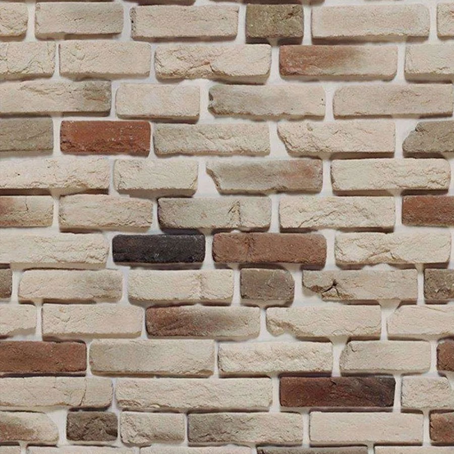 Papel De Parede Modelo Tijolo Em Tons De bege com detalhes Em marrom, cinza e preto.