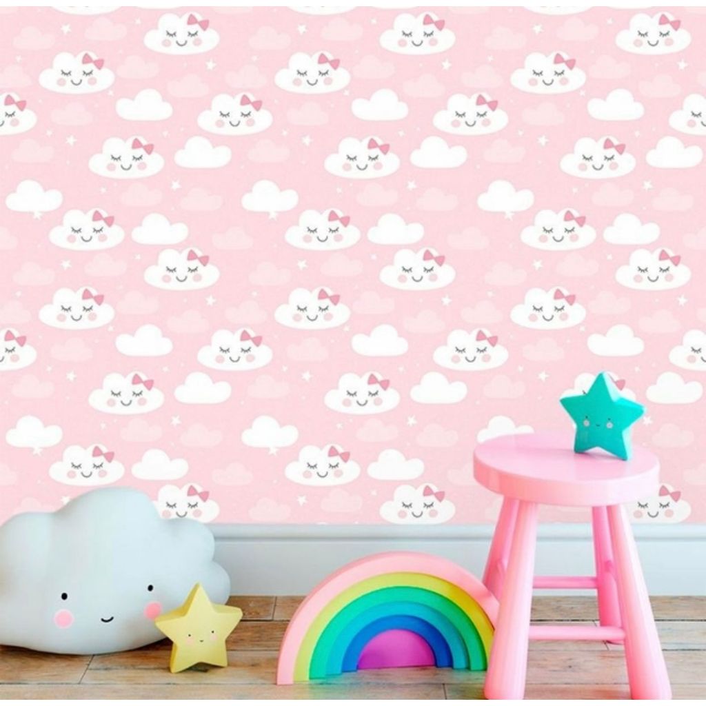 Papel de Parede Nuvem Rosa 5 METROS x 45CM Adesivo Autocolante para Sala, Quarto