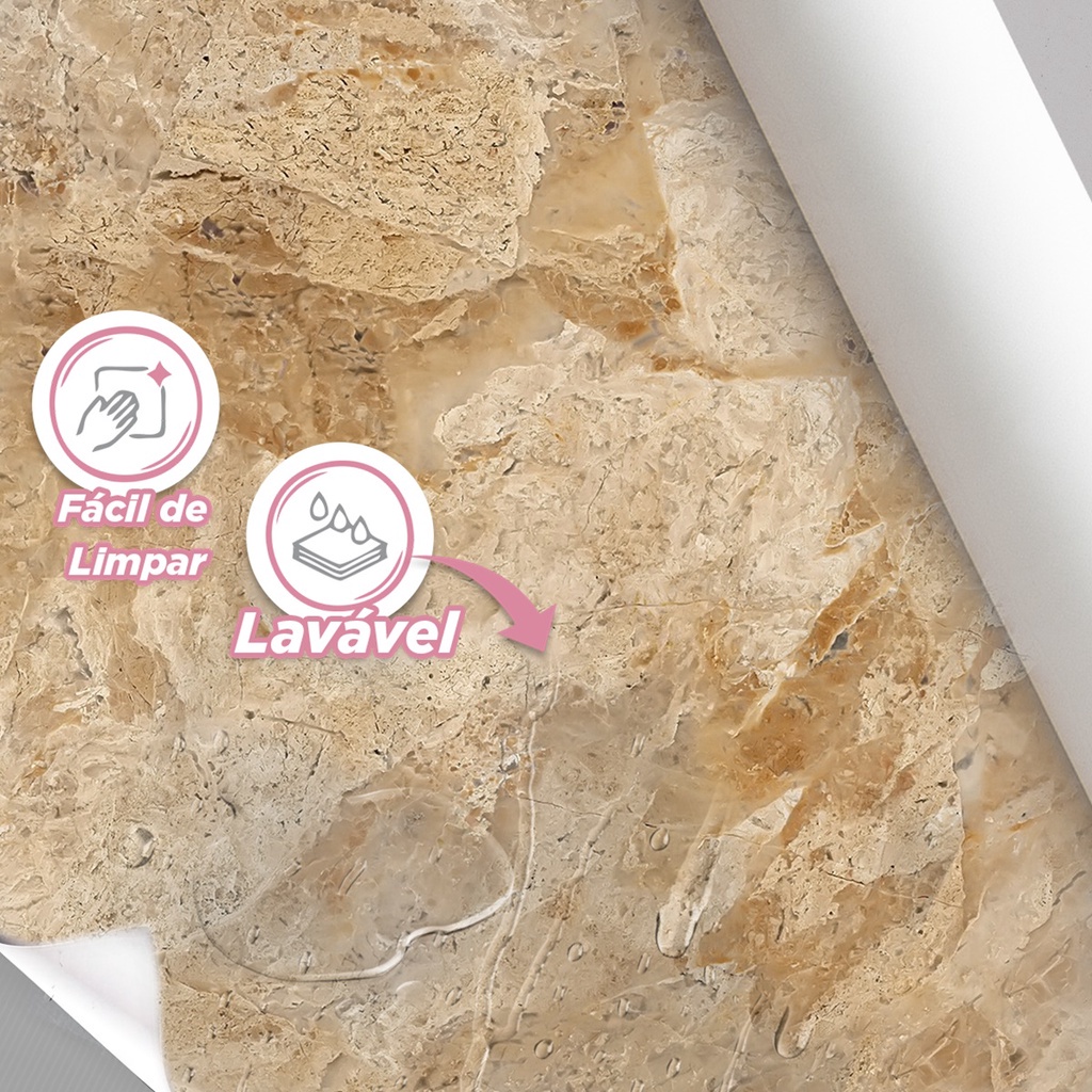 Papel de Parede Painel 3D Mármore Bege Bahia 2M Revestimento Auto Colante Marmorizado lavável