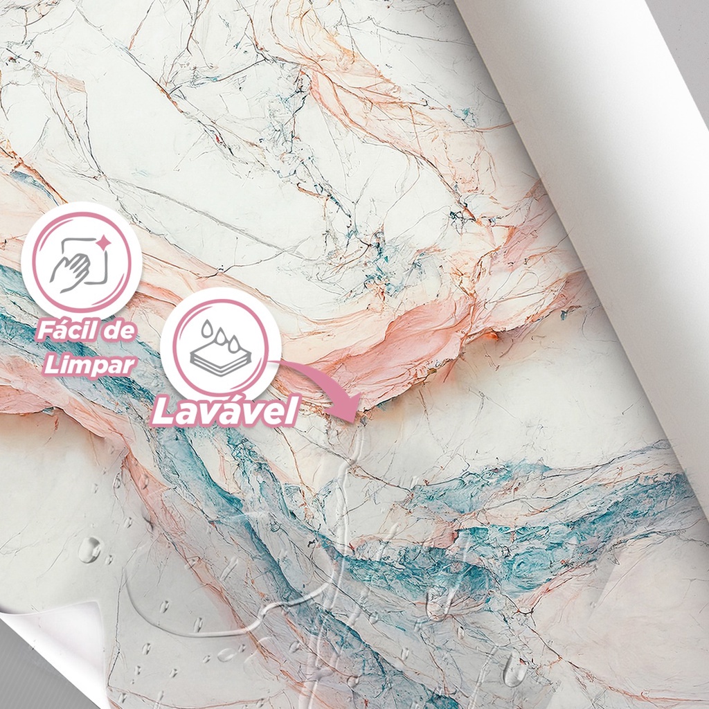 Papel de Parede Painel 3D Mármore Rosa e Azul Brilhoso 2M Auto Colante Lavável Revestimento