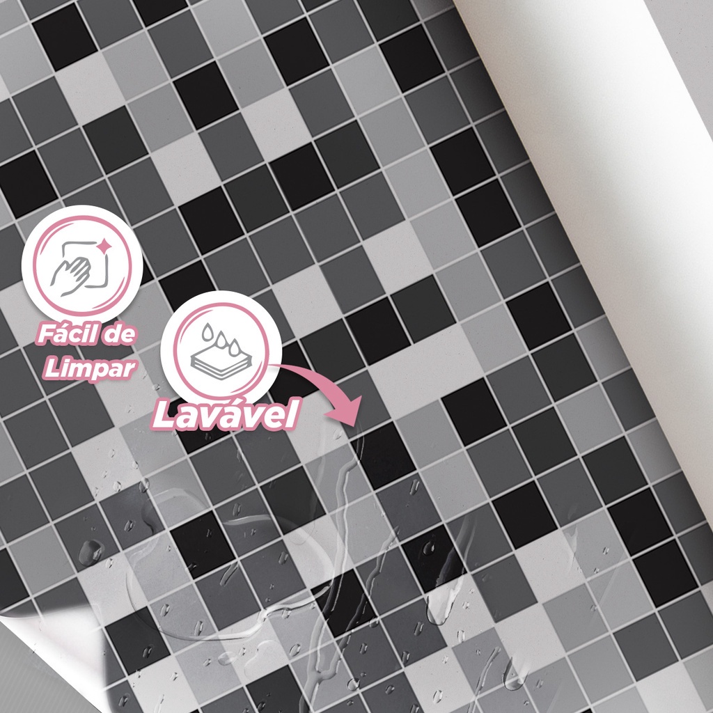 Papel De Parede Pastilha Tons Cinza 3m Cozinha E Banheiro Adesivo Vinil Lavável Autocolante pia box