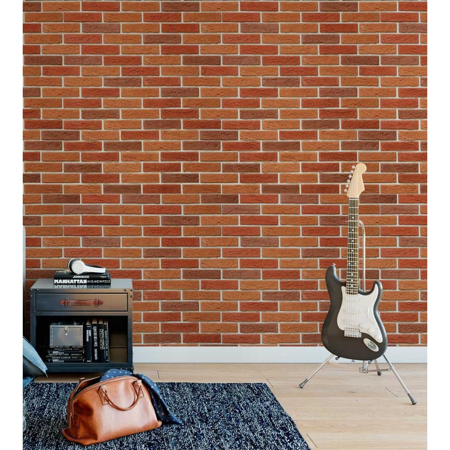 Papel de parede pedras com tijolos tons de laranja e marrom e detalhes bege Para Sala e Quarto