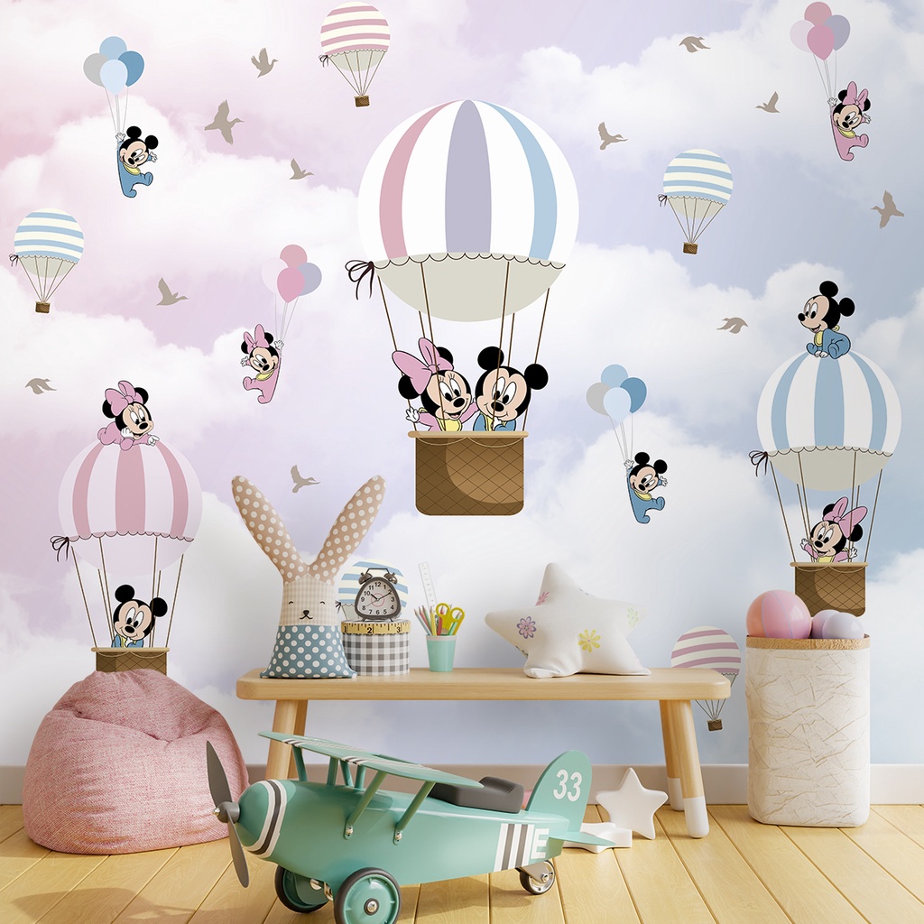 Papel De Parede Personalizado Balões Mickey E Minnie