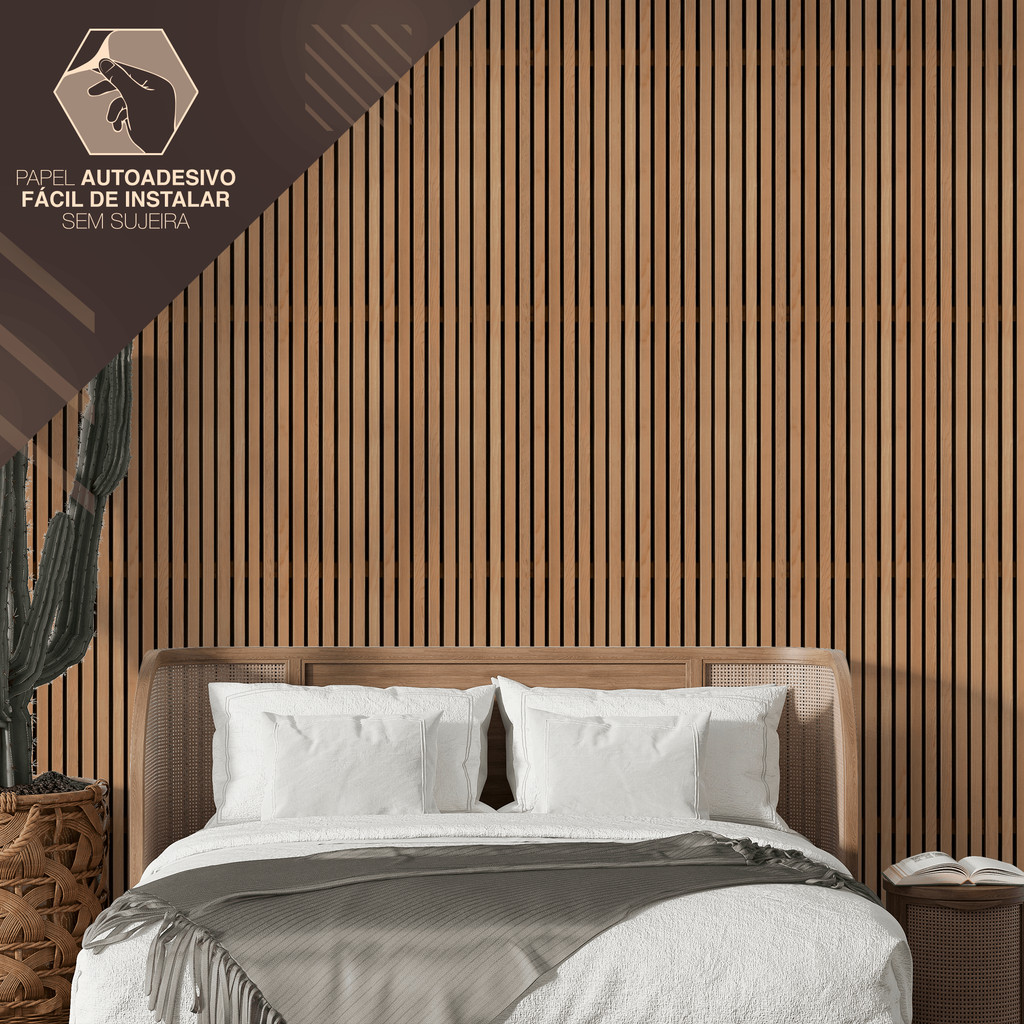 Papel de Parede Ripado Vertical Madeira Adesivo Fácil Aplicação