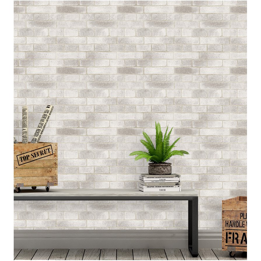 Papel de Parede Tijolo Branco e Bege Para Sala e Quarto