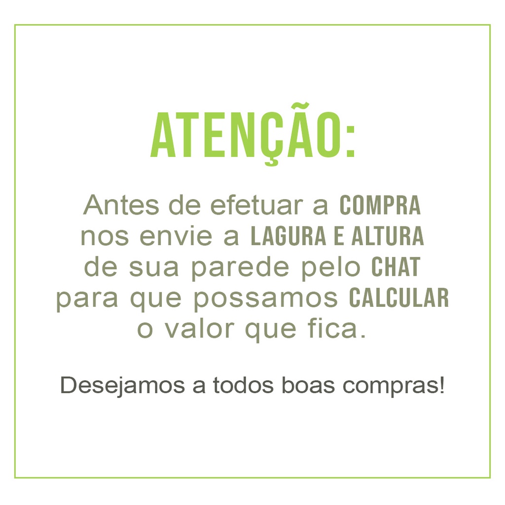 >>>>> ATENÇÃO <<<<< Mande as medidas de sua parede pelo chat antes de efetuar a compra. O valor desse anúncio é referente a 1m² (metro quadrado). ******* ATENÇÃO ******* Antes de efetuar a compra informe no Chat a largura e altura de sua parede para saber o valor que fica e como comprar da maneira correta. **FAZEMOS EM OUTROS TAMANHOS DIFERENTES TAMBÉM** Para saber o tamanho da sua parede é bem simples, basta medir a largura X altura. >>> VAMOS FAZER UM EXEMPLO? <<< Ex.: Sua parede tem 3,20 de largura e 2,50 de altura. Nesse exemplo basta fazer: 3,20(largura) x 2,50(altura) = 8m² (metros quadrados) arredonde um pouco sempre para cima e nunca para baixo. SIMPLES NÃO É? CARACTERÍSTICA DO PRODUTO: - ADESIVO AUTOCOLANTE, vinílico próprio para parede. - Lavável - Pode ser limpo APENAS com pano úmido. - Material liso, não possui textura ou relevo. - Textura: Fosca ou Semi-fosca (Anti-reflexo) - Impresso em alta resolução (Cores vivas) - Não precisa de cola, basta retirar o line no verso e aplicar na parede. OBSERVAÇÕES SOBRE O PAPEL DE PAREDE ADESIVO: É necessário que a superfície seja lisa, livre de qualquer tipo de textura. Não pode estar úmida ou empoeirada. A sobreposição para emenda é de 0,3mm isso significa que após instalar a primeira peça na parede a próxima deve ser colocada 0,3mm em cima da outra para que o desenho encaixe corretamente. Devido as configurações de cada monitor, pode ocorrer variações de até 10% na tonalidade. ******* ATENÇÃO ******* Não se esqueça de conferir direitinho a largura e altura de sua parede e nos enviar para que não dê nada errado