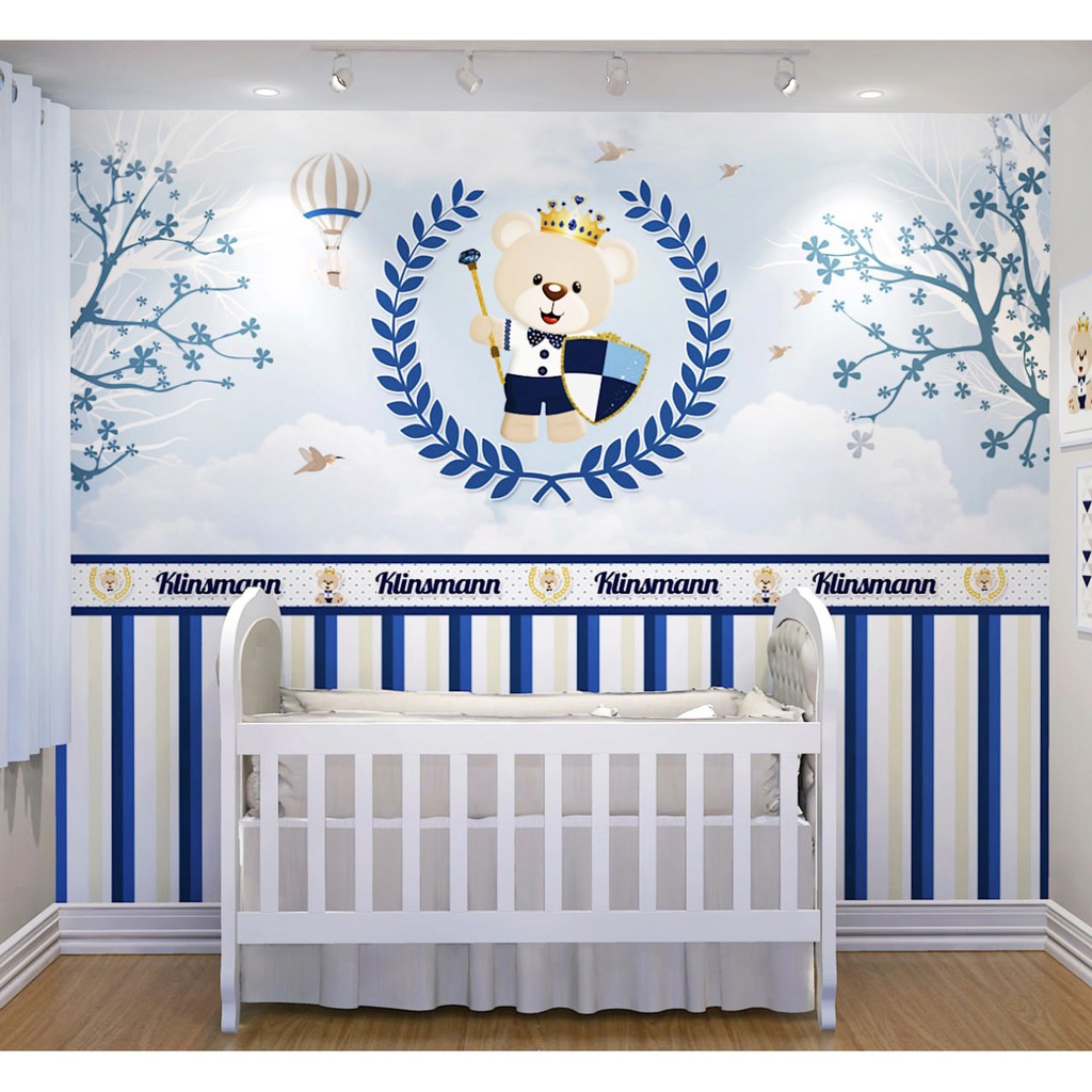 Papel de Parede Urso Príncipe Azul Quarto de Bebê Personalizado Infantil