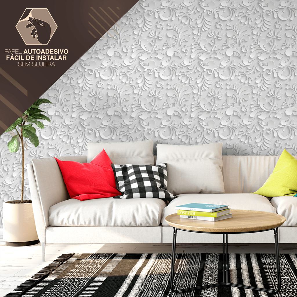 Papel de Parede Vinílico Arabescos Efeito Gesso 3d Adesivo Resistente