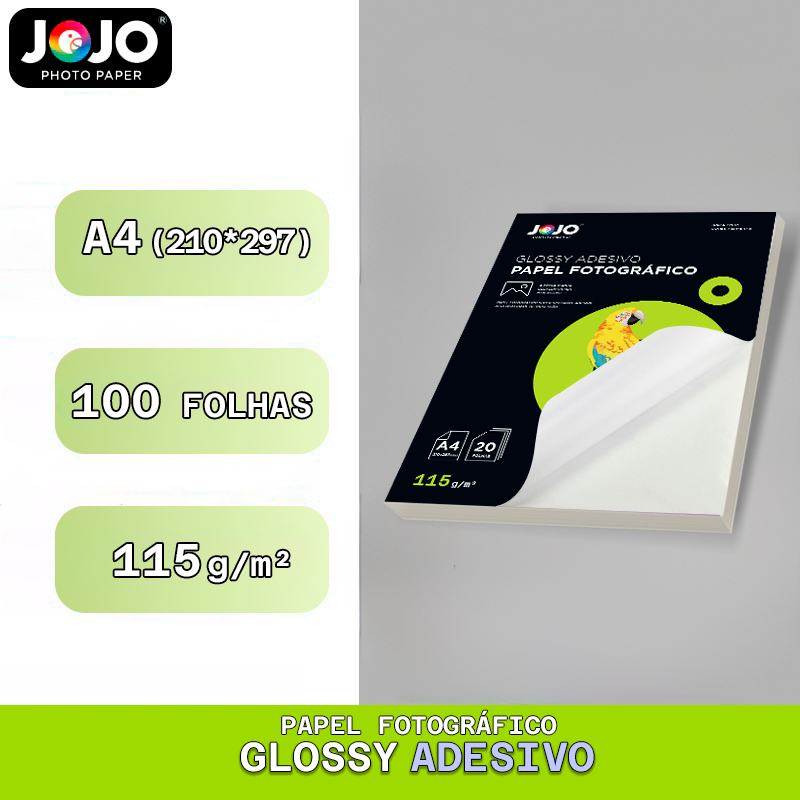 Papel Fotográfico A4 ADESIVO Glossy 115g 100 Folhas Super Brilhante JOJO