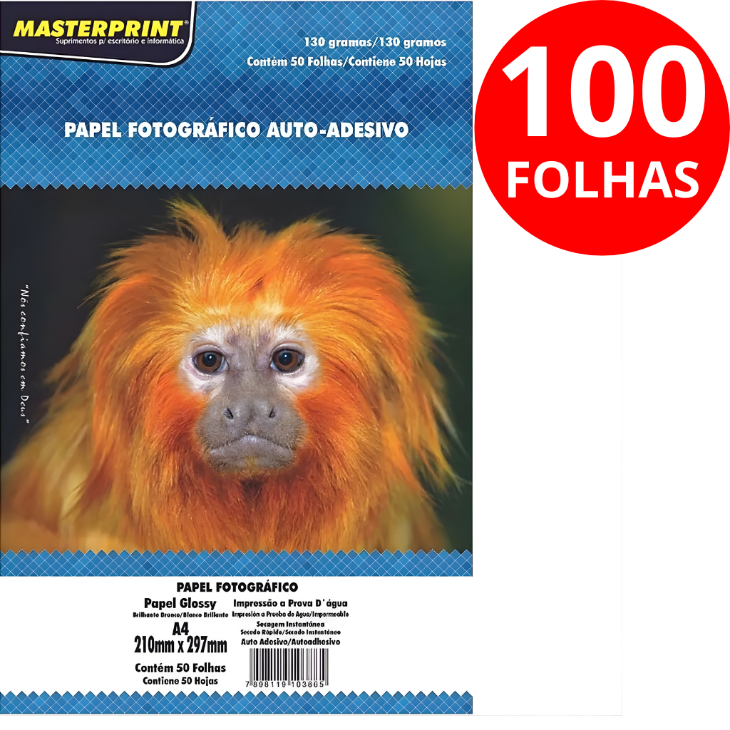 Papel Fotográfico Adesivo 130g A4 Glossy Masterprint 50/100/150 Folhas