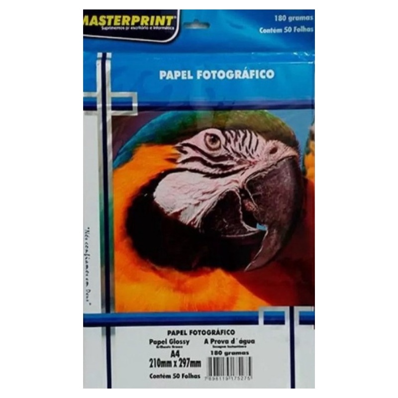 Papel Fotográfico Foto 180g A4 Glossy Brilhante Resistente a Água 300 Folhas Masterprint