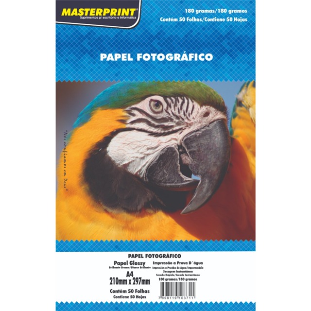 Papel Fotográfico Foto Glossy Brilhante 180g Resistente a água Premium A4 MASTERPRINT