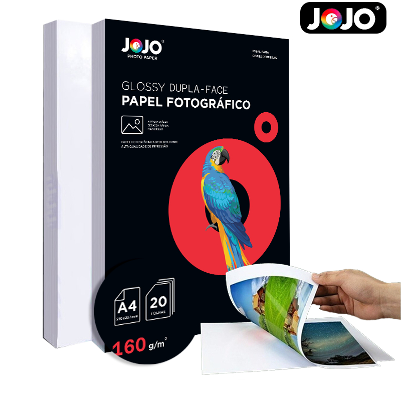 Papel fotográfico GLOSSY DUPLA-FACE (Brilho) 160g/m² A4 FOLHAS p/ impressoras à jato JOJO PHOTO PAPER