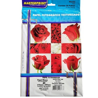 Papel Glossy MasterPrint Texturizado 200g/m² 20 Folhas A Prova D' Água Branco Linho Pérola Casca de Ovo Couro